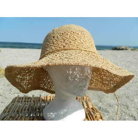 Ce super chapeau cloche naturel pour femme en raphia crochet et en taille unique liens de resserrage